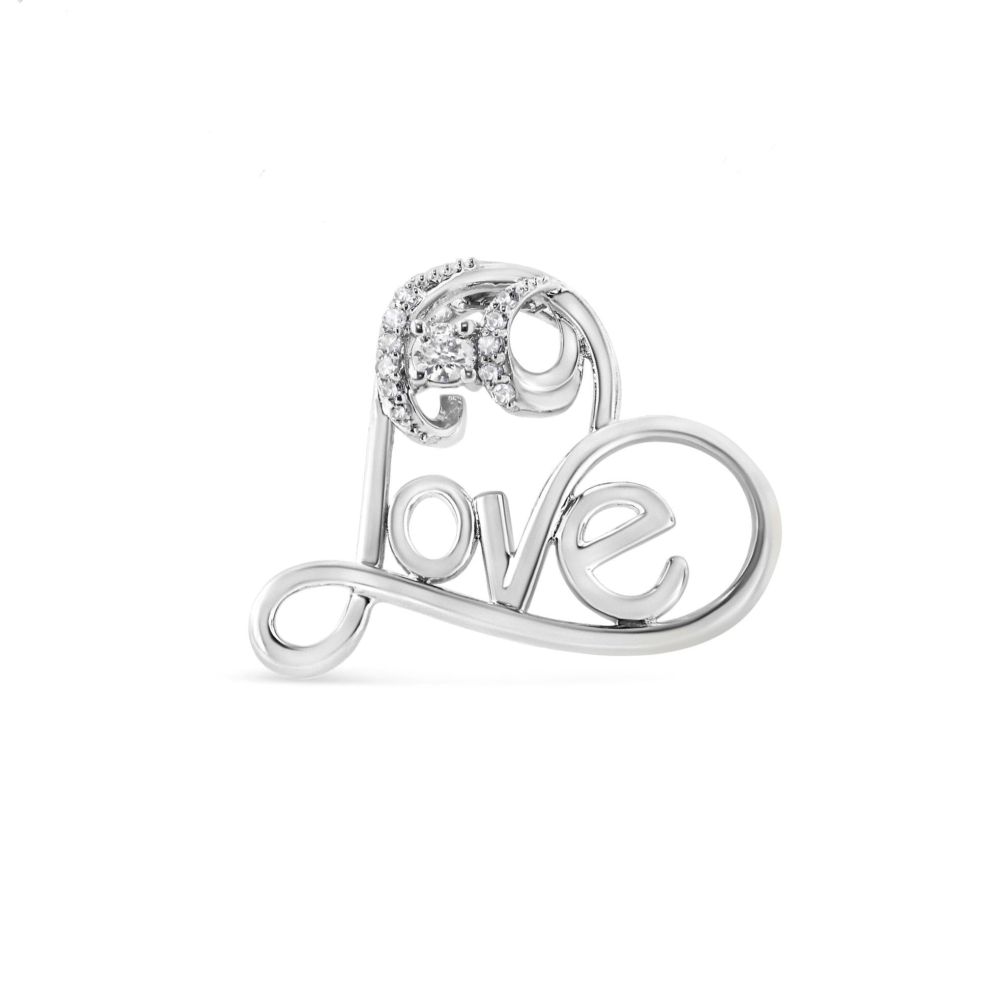 Celebrate someone you love with this stunning diamond heart pendant. This diamond necklace features an open heart design with the outside arch of the heart forming a cursive L as the beginning of the word Love spelled inside the heart. The second curve of the heart makes up one side of the V. At the top of the heart are two curls studded with diamonds. The pendant comes on a box chain necklace with a spring ring clasp. The contemporary yet classic 18"" box chain complements any neckline beautifully. This authentic design is crafted of real 92.5% sterling silver that has been electro-coated with genuine rhodium (a platinum-family metal), ensuring it will keep a tarnish-free shine for years to come. Both pretty and personal, this romantic diamond heart pendant necklace is sure to radiate romance. This sweet necklace makes a perfect Valentine's Day gift, or as a way to remember someone close to your heart. It's a classic and feminine piece she'll want to show off every day.