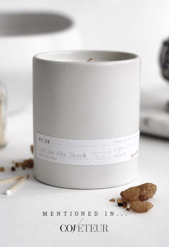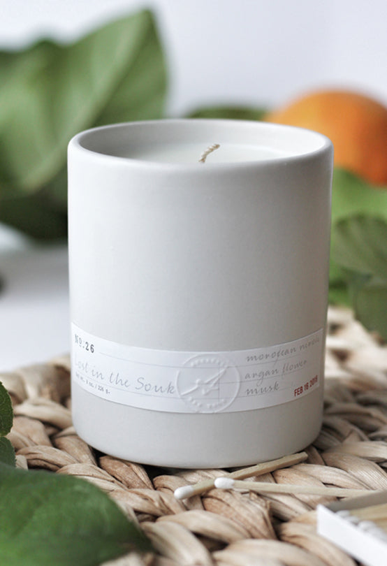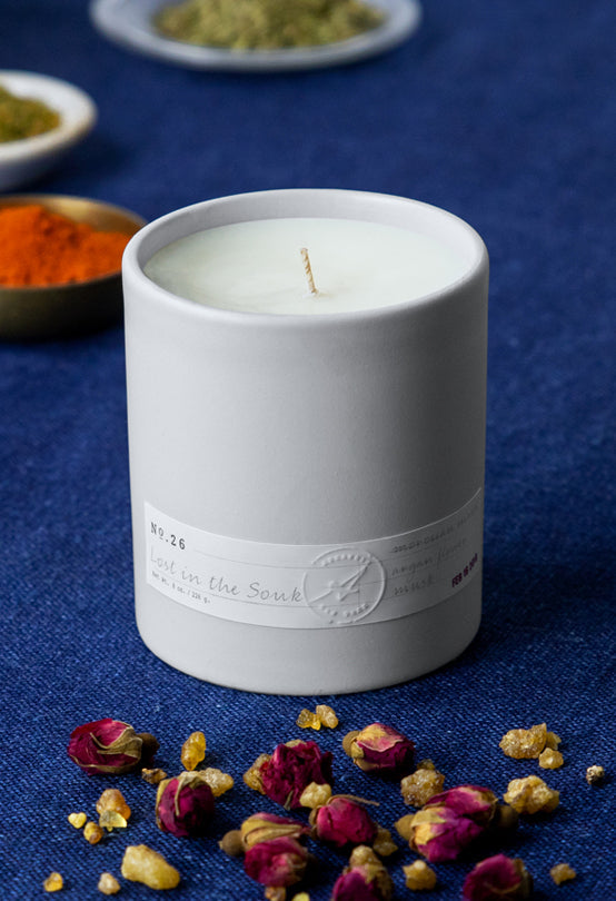 This scent was developed for an interior designer who, with her husband, curates and sells Moroccan rugs. Together, they travel to small Moroccan villages multiple times a year to source intricate, handcrafted rugs. We created this candle so that her clients could experience Morocco's signature scents—an intoxicating mix of citrus, spices, and orange blossoms made even more prevalent by the warm desert sun.